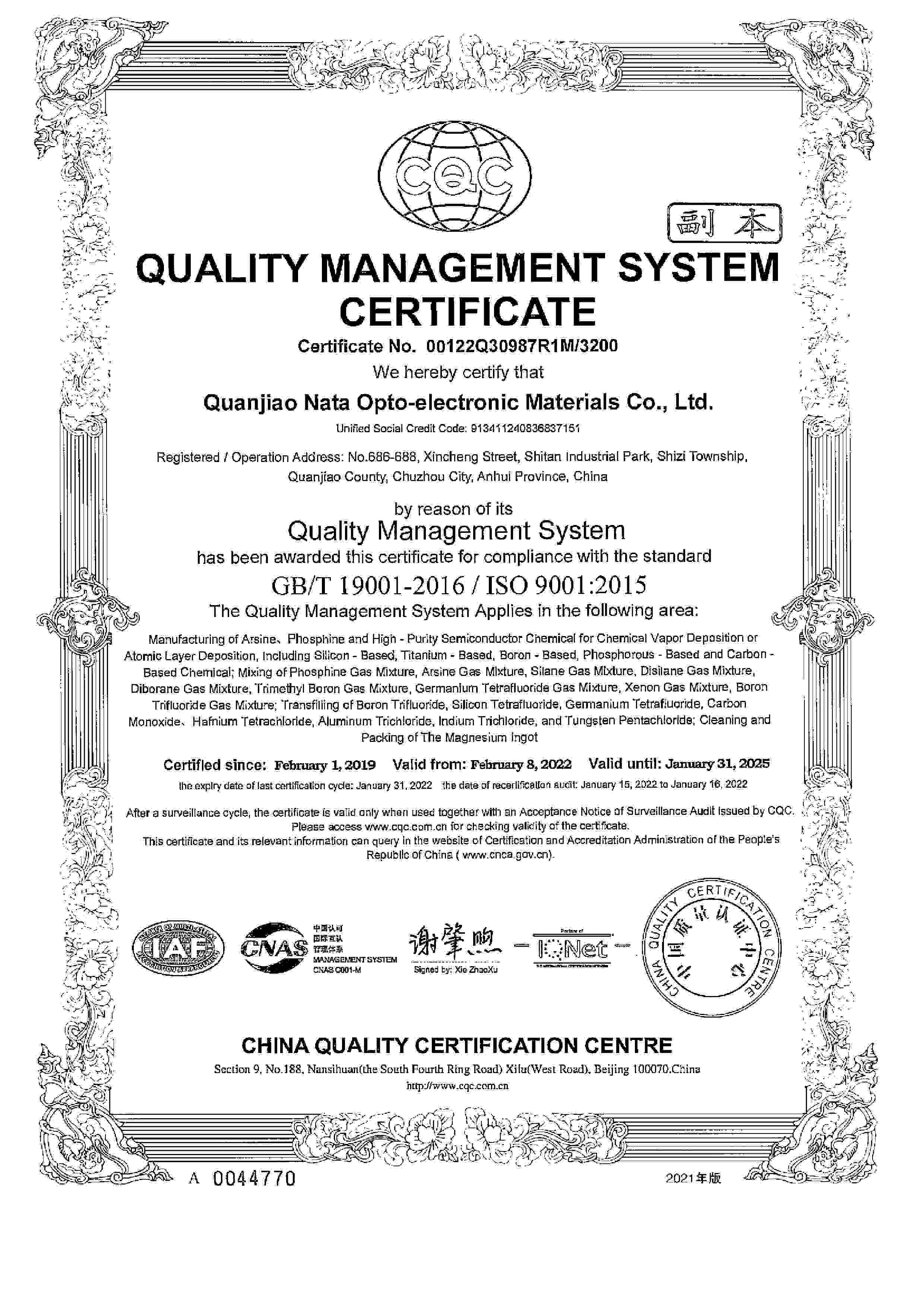 安全生產標準化證書