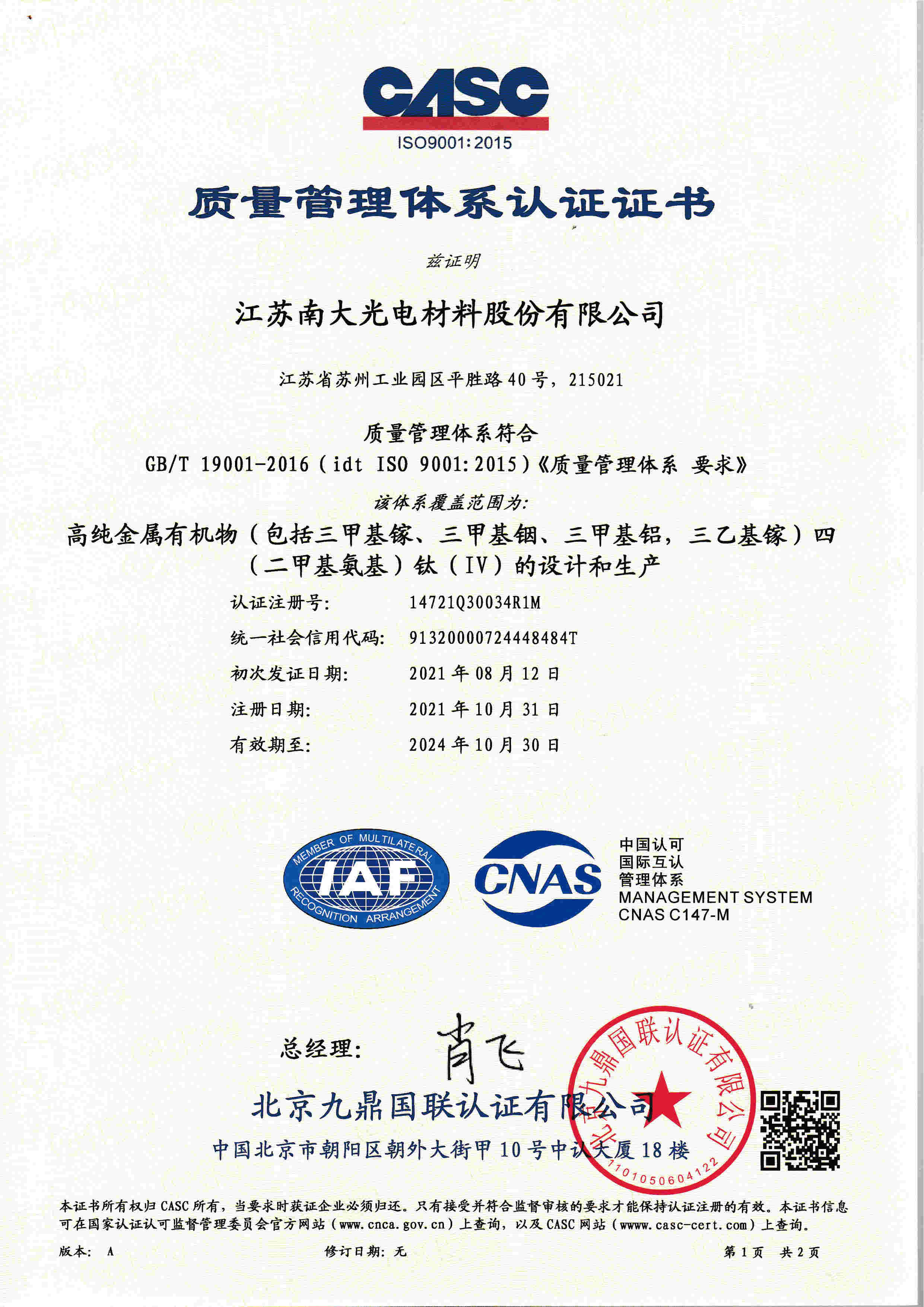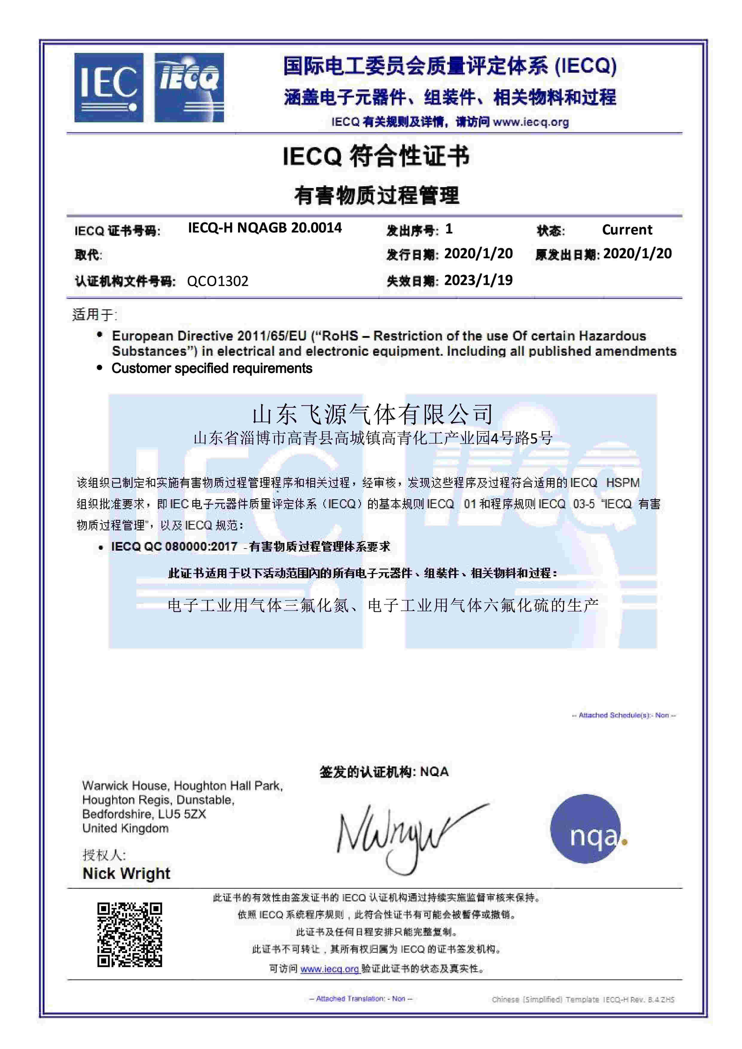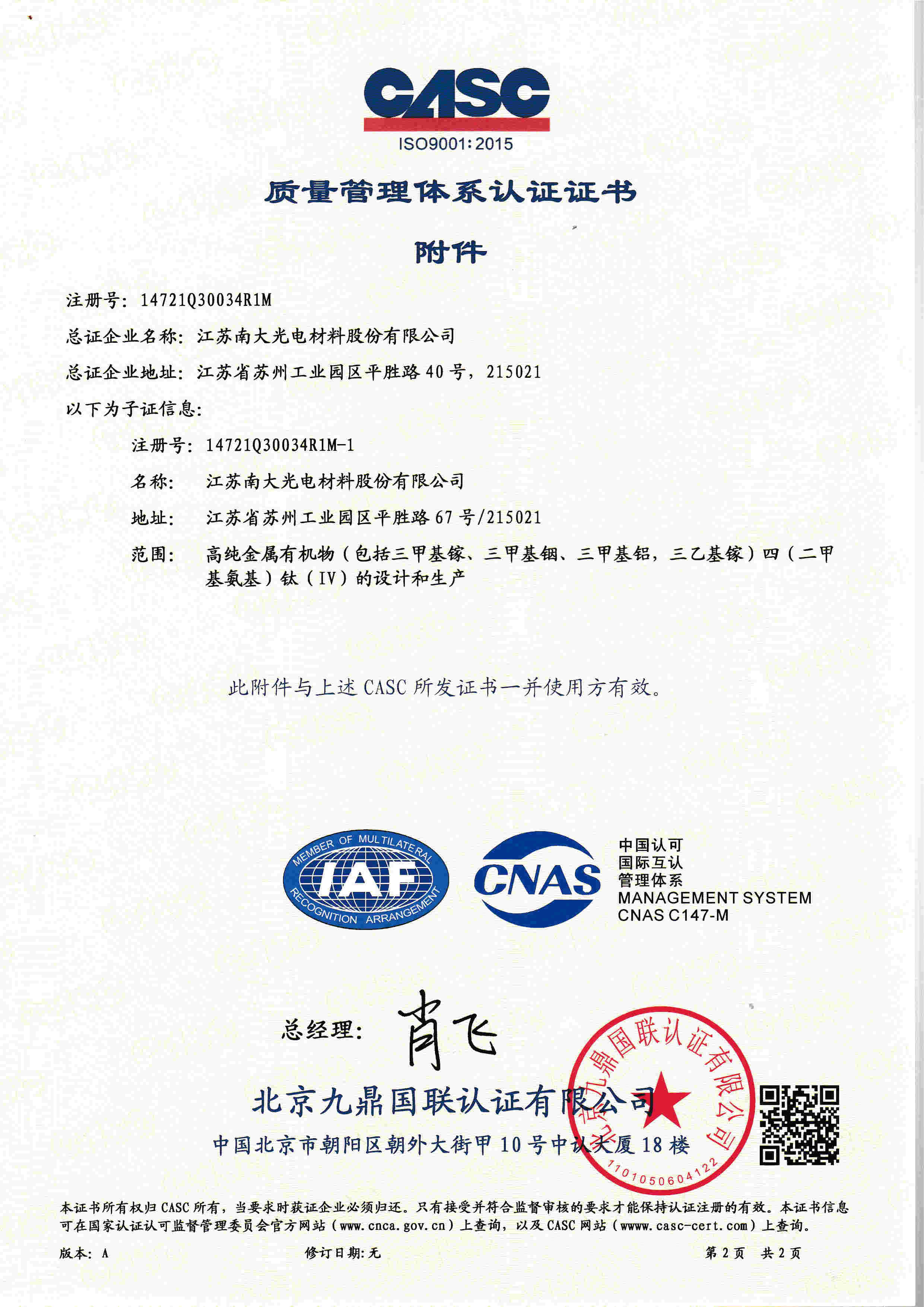ISO14001證書